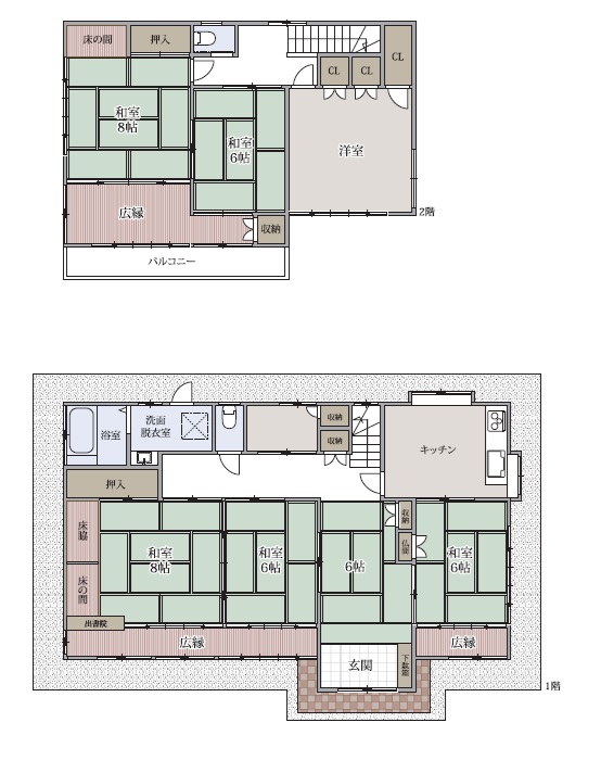 和室8帖・6帖が複数あり、客間・趣味部屋・多世帯利用にも対応。